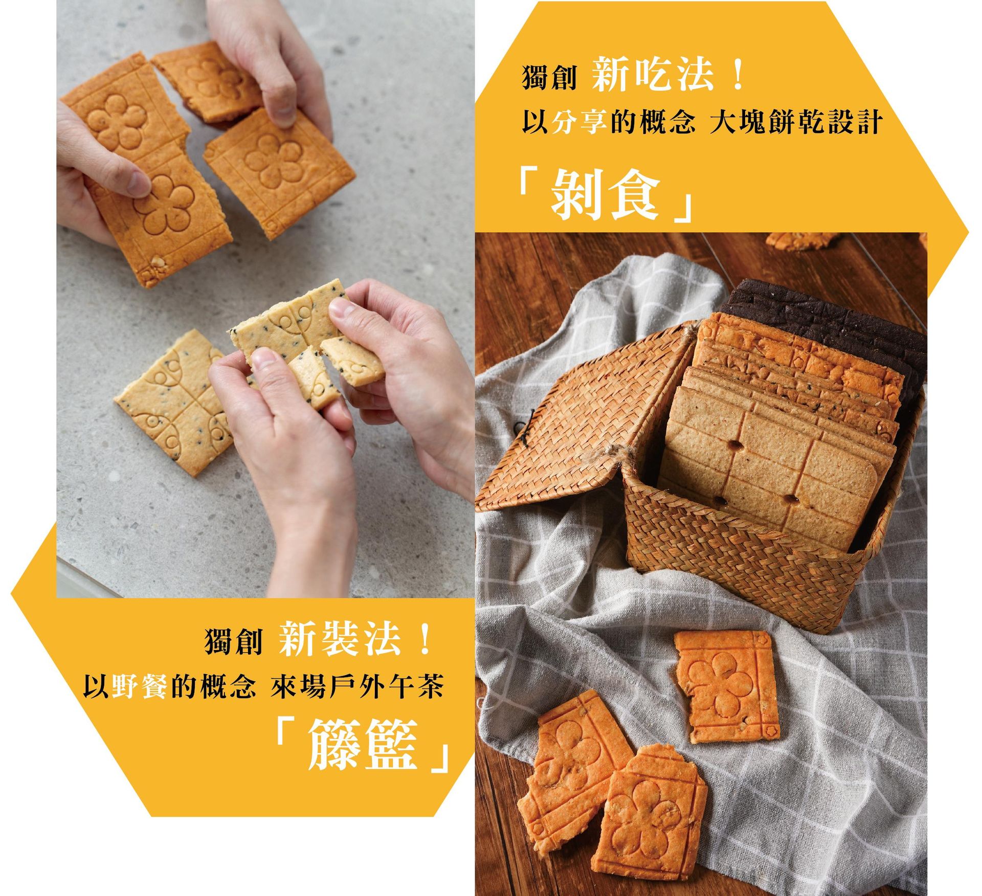 大塊餅乾形式的設計,剝食的分享概念